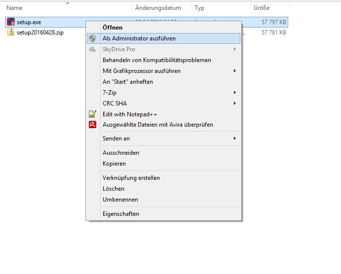 Starten Sie die Setup-Datei als Administrator