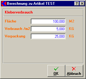 In diesem Fenster werden die benötigten Angaben eingegeben und das Ergebnis in die Menge der Artikelposition übernommen.