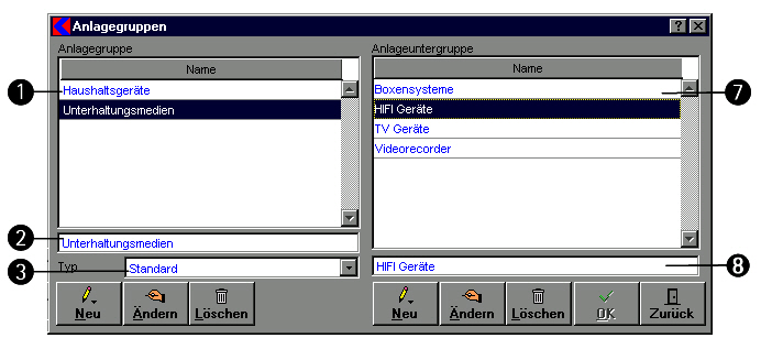 - Schaltfläche Ändern: siehe Anlagengruppe.