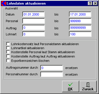 Mit diesem Hilfsprogramm können Sie bereits gebuchte Lohnsätze gezielt aktualisieren lassen bzw. manipulieren.