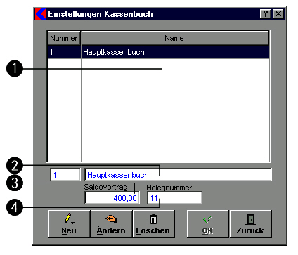 - Hier können Sie nach Klick auf die Schaltfläche Ändern den Namen des ausgewählten Kassenbuchs ändern oder nach Klick auf die Schaltfläche Neu ein neues Kassenbuch anlegen.
