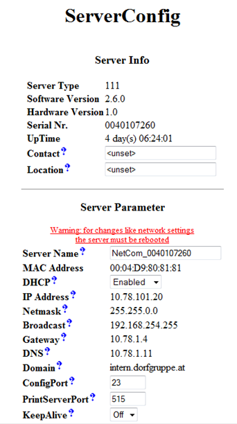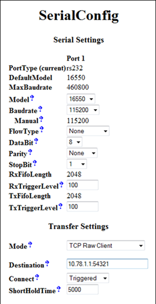 Im Fall von DHCP werden diese Werte automatisch bezogen Serial Configuration