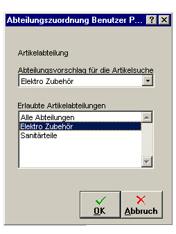 Im Listenfeld sind alle Artikelabteilungen zu wählen, die dem Benutzer zur Einsicht erlaubt sind.