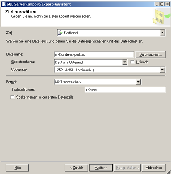 Auf den folgenden Masken sehen Sie das Beispiel eines einfachen Kundenexportes