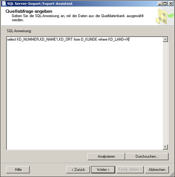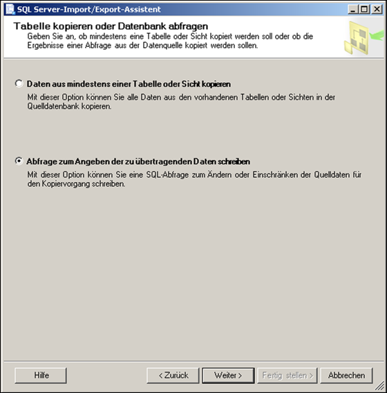 Ausführungspläne löschenUm die Ausführungspläne am MSSQL Server zu löschen geben Sie auf der Konsole folgendes ein. dbcc dropcleanbuffers Mit F5 ausführen. MS SQL - Auftrag erstellen (Exporte,..)Sie haben die Möglichkeit auf dem SQL Server Aufträge zu generieren die dann zu bestimmten Zeiten oder auch manuell ausgeführt werden. Ein klassisches Beispiel für einen Auftrag ist ein Export.