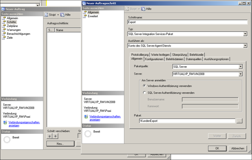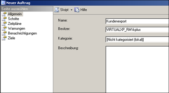 Danach müssen Sie einen neuen Auftrag anlegen. Der SQL Server Agent muss dafür laufen, ansonsten werden die Aufträge nicht ausgeführt.