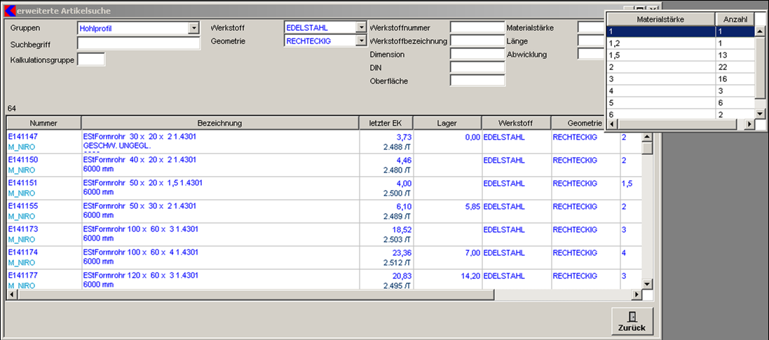 Erweitere ArtikelsucheMit der erweiterten Artikelsuche können Sie dem Artikel beliebige Eigenschaften vergeben, nach denen Sie dann beliebig kombiniert suchen können.
