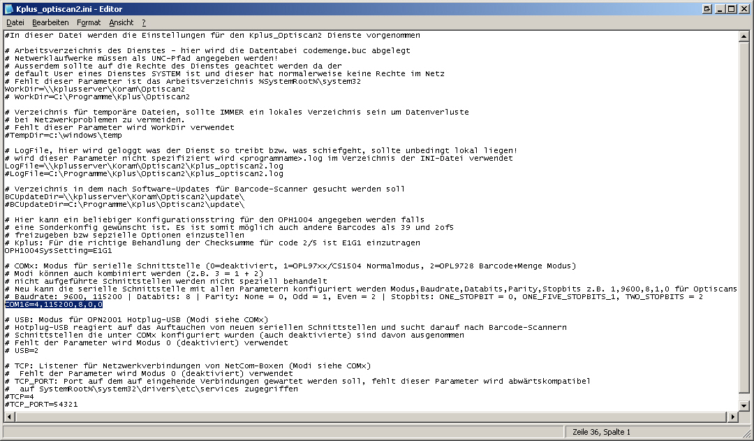 Diese Routine versucht die Datei Kplus_Optiscan2.ini in das c:\Windows\System32 von Windows zu kopieren. Die Datei wird dann von Notepad geöffnet