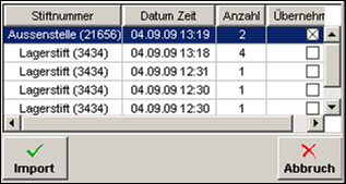 Die Pfadangabe wird immer aus den Optionen für den mobilen Stift gelesen und kann hier nur temporär für Testzwecke überschrieben werden. Gespeicherte Artikellisten: