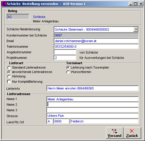 Dies wird bei Schäcke als Zustellvermerk gespeichert und ist auf dem Lieferschein dann auch mit angedruckt. - Lieferadresse