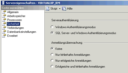- Der SQL Server muss auf SQL Authentifizierung eingestellt sein