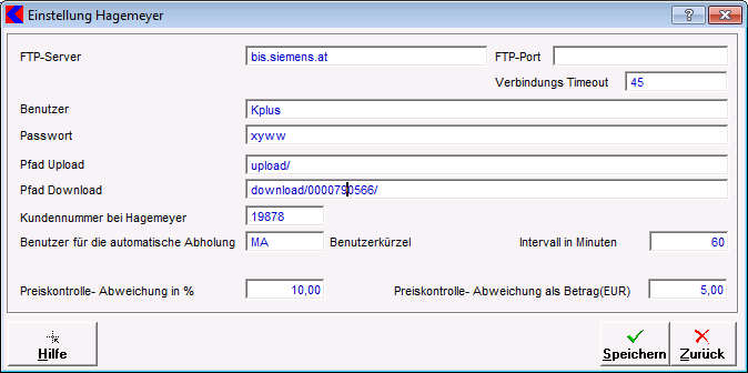 Geben Sie hier die Internetadresse des HAGEMEYER-Servers an. Vorschlag: bis.siemens.at - FTP-Port
