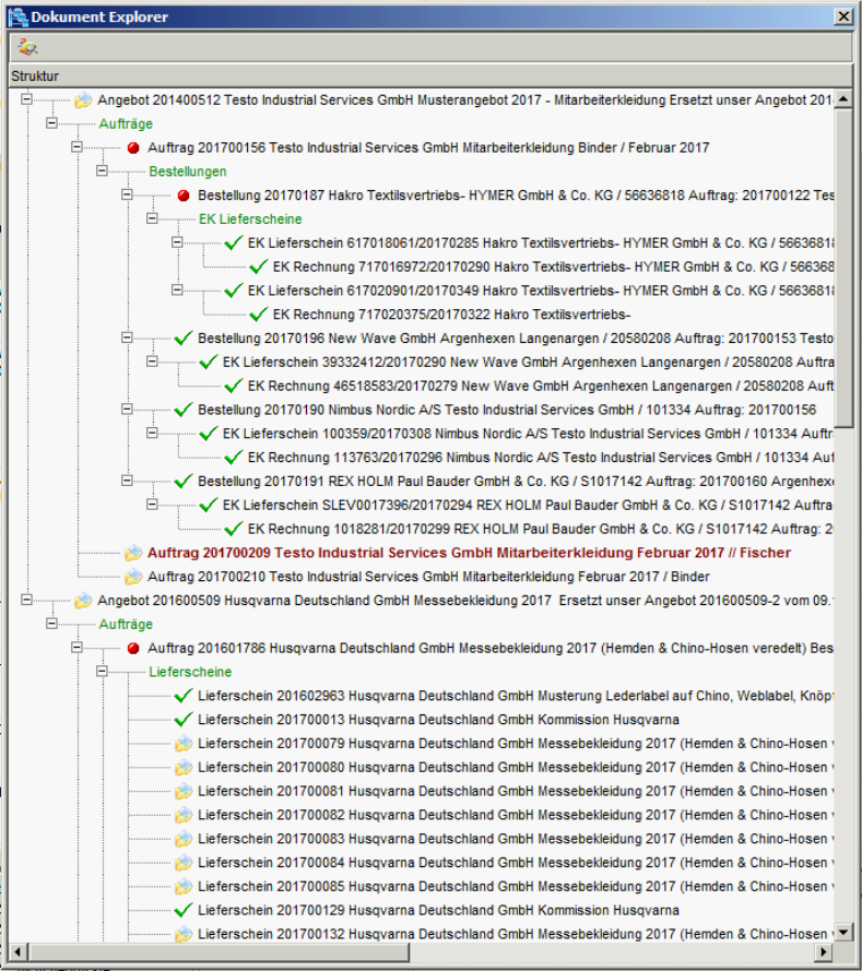 Der Dokumentenexplorer stellt die Beziehungen zu den anderen Dokumenten dar.